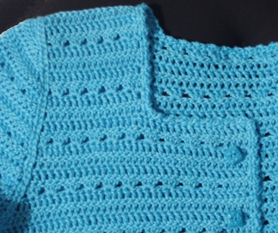 Hele settet er heklet i 5-tråds bomullsgarn, jakken med heklenål 3,5.