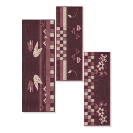 Den er applikert på vinrød lin med 3 stk. bomullstoffer.