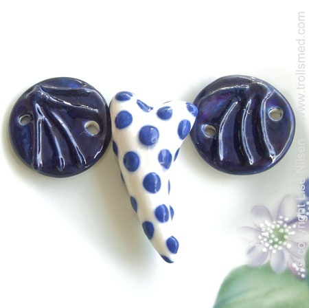 Kult sett, det nærmer seg gladsommer! Stort håndlaget smykkehjerte i porselen, ca 43mm,og flate porselensperler.Håndlaget porselen ca 24mm.Passer flott til macrame!