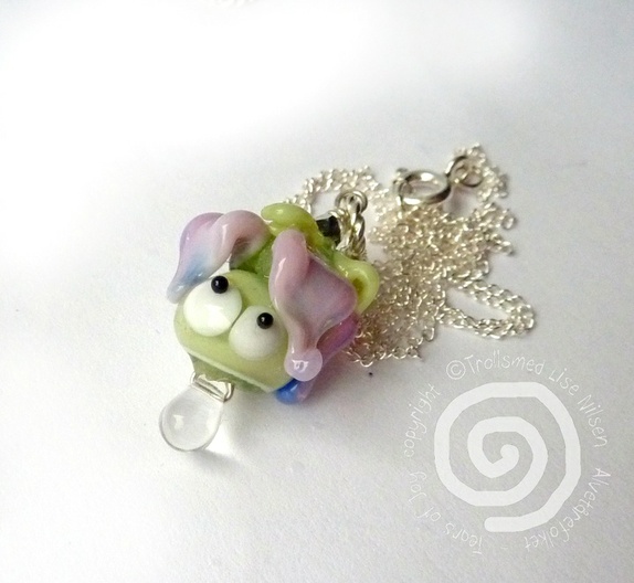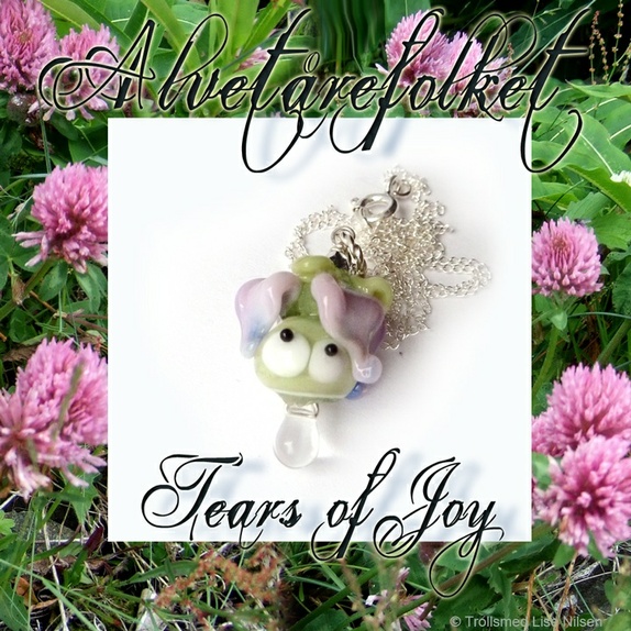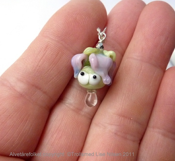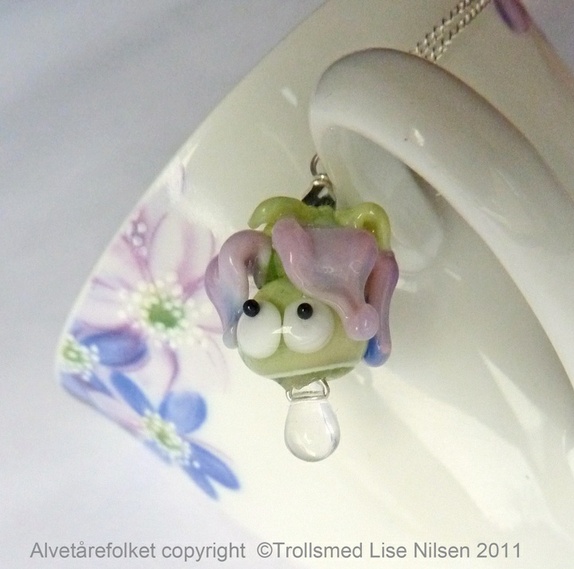 De er egentlig av doggfolket. Doggfolket er også en del av Alvetårefolket.... denne er rund, håndlaget glass, og henger i sølv kjede.
