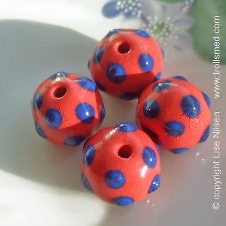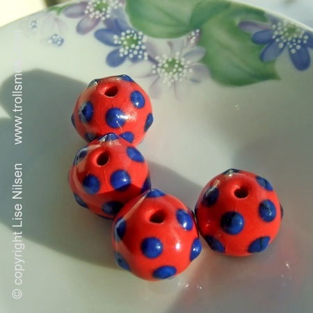 4 røde håndlagde porselensperler TILBUD