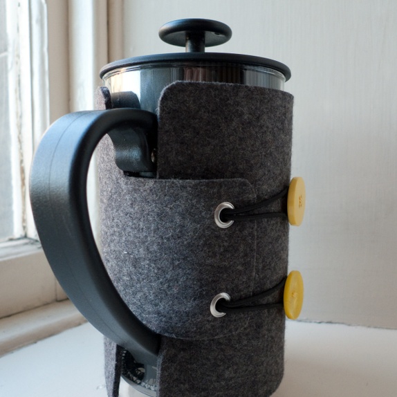 Presskannejakke i 100% ullfilt for presskanner med sansen for klassisk antrasittgrå. Knæsjgule knapper lyser opp selv den tristeste mandagsmorgen og strikkhemper sørger for at jakken sitter godt.