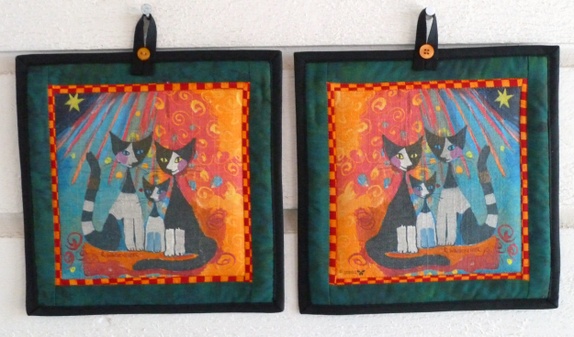 Motivet er decopage på lin. Kantar og bakstykke i bomull.Vattert og qullta i saumane.Storleik: 22 x 22 cm Prisen er pr. par.
