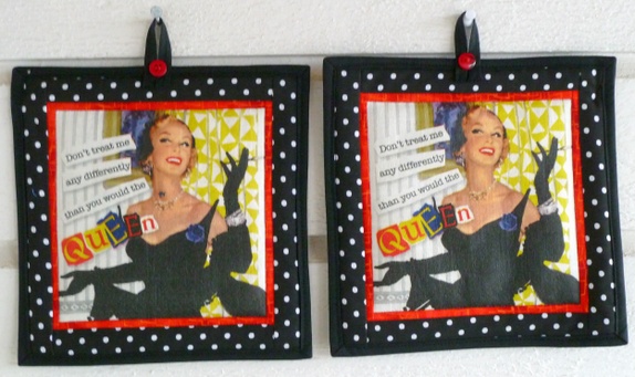 Motivet er decopage på lin. Kantar og bakstykke i bomull.Vattert og qullta i saumane.Prisen er pr. par.