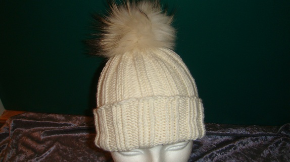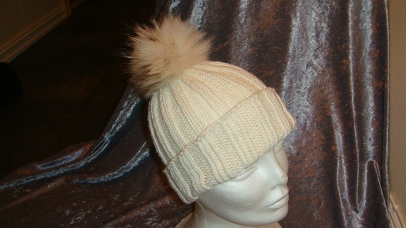 Luen er håndstrikket i 60% merinoull og 40% polyacryl.