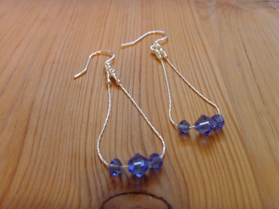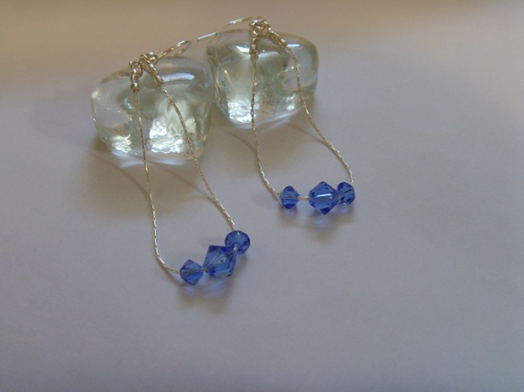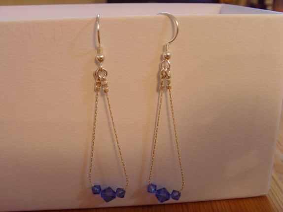 Øredobbene består av 6 og 4 mm store Sapphire swarovski bikone krystaller. Disse er tredd på 925s sølv kjede.