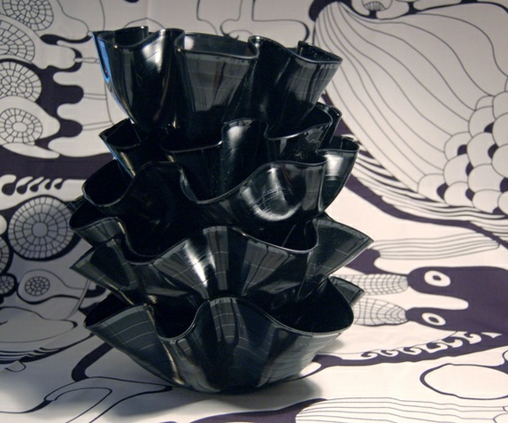 Denne skåla er laget av en gammel LP-plate - gjenbruk på sitt beste! Bruk den som skål eller heng den på veggen som pynt! Svart skinnende vinyl er både pent og nostalgisk. Passer godt til frukt, eller Twist og andre innpakkede godbiter.