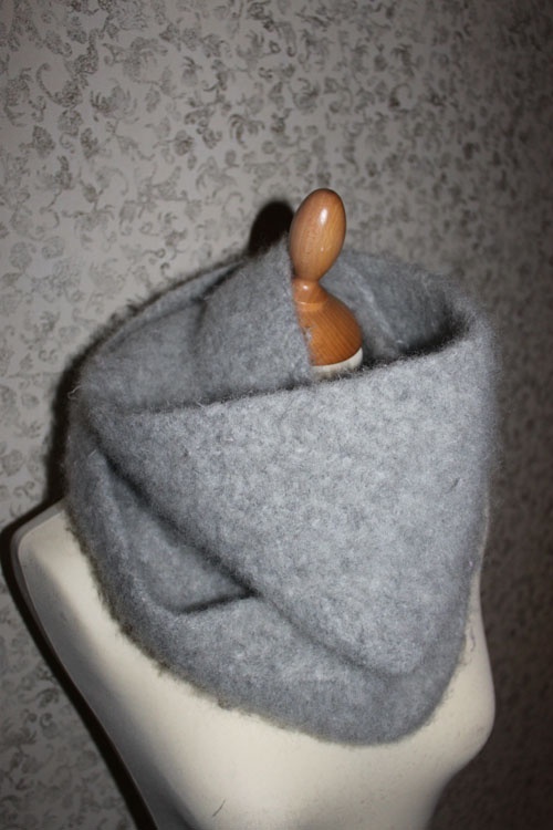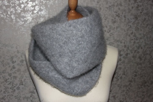 Et "must" i vinterkulda!! Strikket (Sandnes Fritidsgarn) og tovet i vaskemaskin. Bredde 17 cm. Slås to ganger rundt halsen.