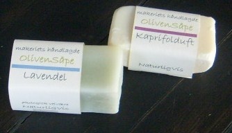 forsåpet oliven, mandel, lavendel og ricinolje, kokosfett, naturlig glyserin, azulen (kamilleblå) og eterisk lavendelolje.