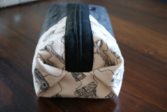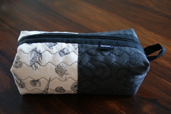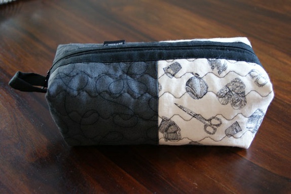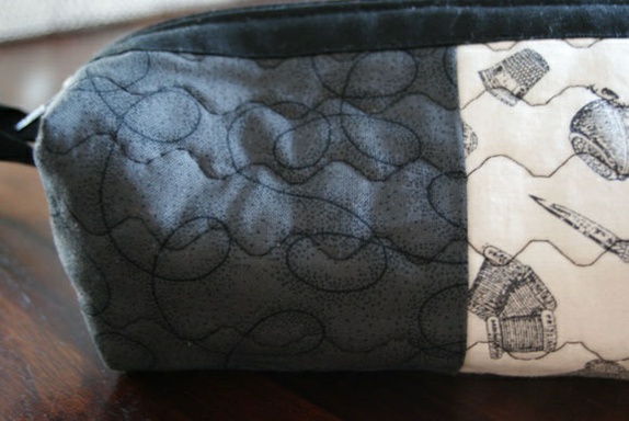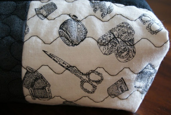 Stort pennal/sminkepung med motiv av sytilbehør