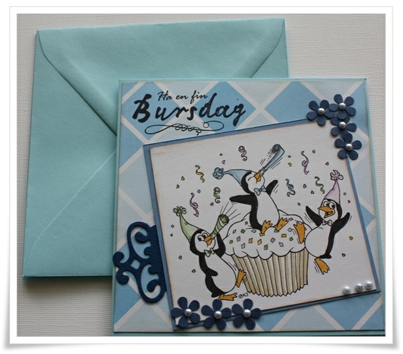 Kortet er i 13x13 str og levers med farget konvulutt som på bilder. Dette kortet er kun dekorert på forsidenstemplet er malt med hånd. Stemplet er fra karensdoodles.