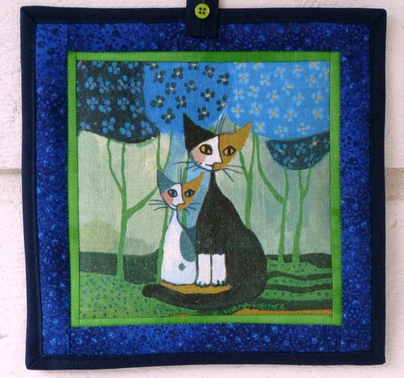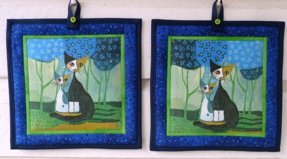 Motivet er decopage på lin. Kantar og bakstykke i bomull.Vattert og qullta i saumane.Storleik: 22 x 22 cm Prisen er pr. par.