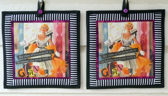 Motivet er decopage på lin. Kantar og bakstykke i bomull.Vattert og qullta i saumane.Storleik: 22 x 22 cm Prisen er pr. par.