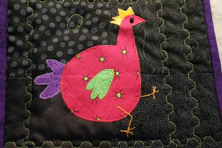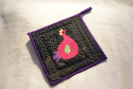 Den lilla kanten er sydd igjen på baksiden for hånd.