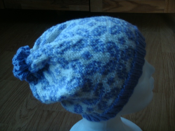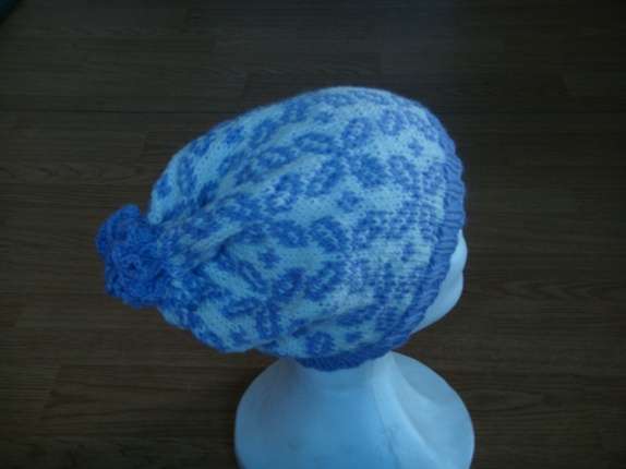 Luen er strikket i Smart (100% ren ny ull )Den kan vaskes på 40 grader. Størrelsen er Stor dame. Den har ikke dusk ,men er snurpet sammen av en tvinnet tråd.Dette gir en flott avslutting på toppen av luen før 120 nå 95,-