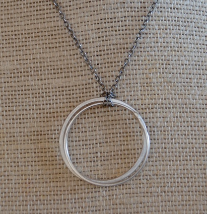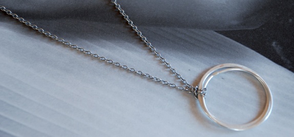 Smykke i 925 sølv med to håndlagde ringer som henger fra et sølvkjede. Ringene er ca 3cm i diameter, den ene blank og den andre børstet. Kjedet er ca 44 cm langt og kan forlenges til ca 48 cm. Ønsker du kortere eller lengre kjede gir du beskjed så ordner jeg det :)