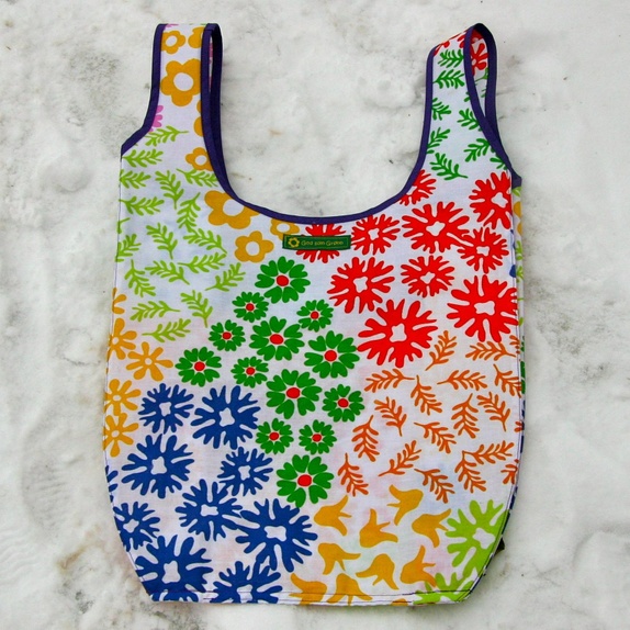 Posen er sydd etter modell av de i plastikk og rommer utrolig mye - du får enkelt en hverdagshandel i en slik - for helge- og høytidshandel trenger du nok noen flere. Den er mye mer behagelig å bære enn engangsposene og du slipper å engste deg for at posen ryker selv om du har handlet melk til hele familien (den rommer minst 8 liter).