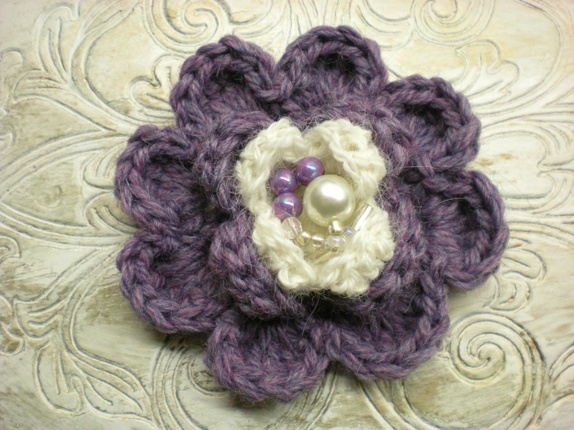 8cm i dia, påsydd nål bak.