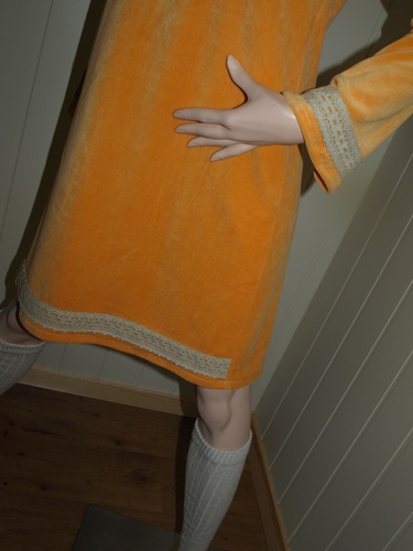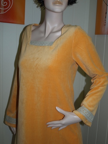 Kjole i gul stretch chenille str L.en mailfor må eller ring.