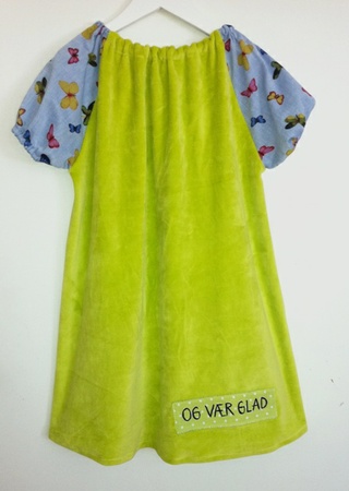 Limegrønn med blå ermer og detaljer. SOMMER!