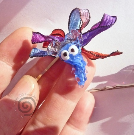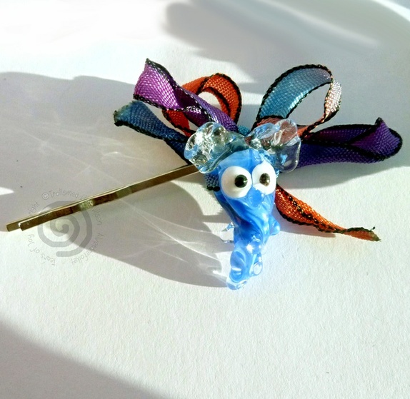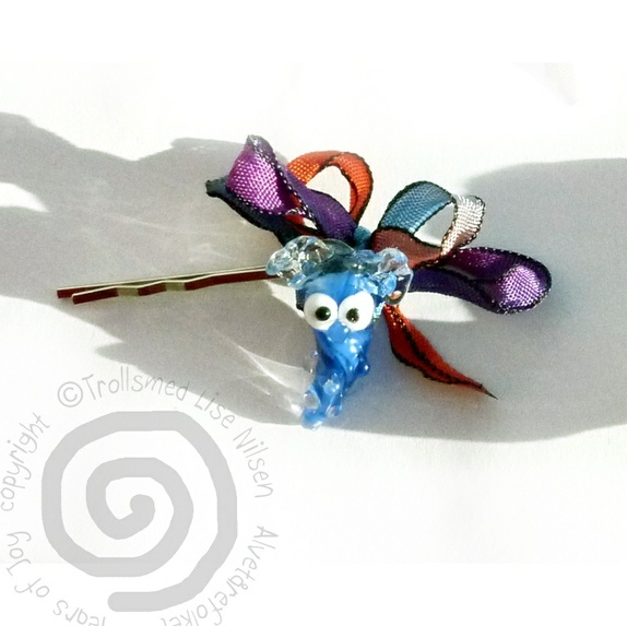 1 stk alvetåre håndlaget hårspenne i lampwork.