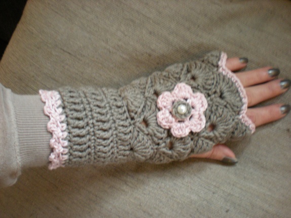 Kan brukes på to måter, da tommel også kan stikkes inn mellom heklede skjell.