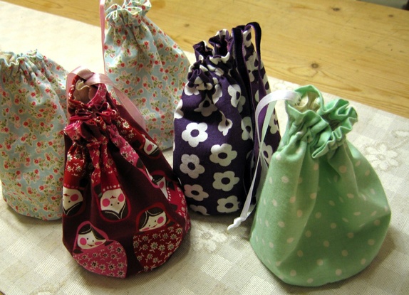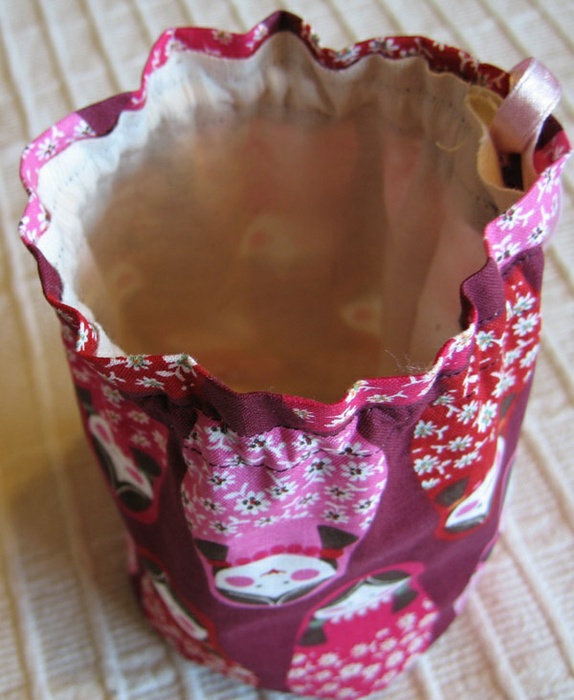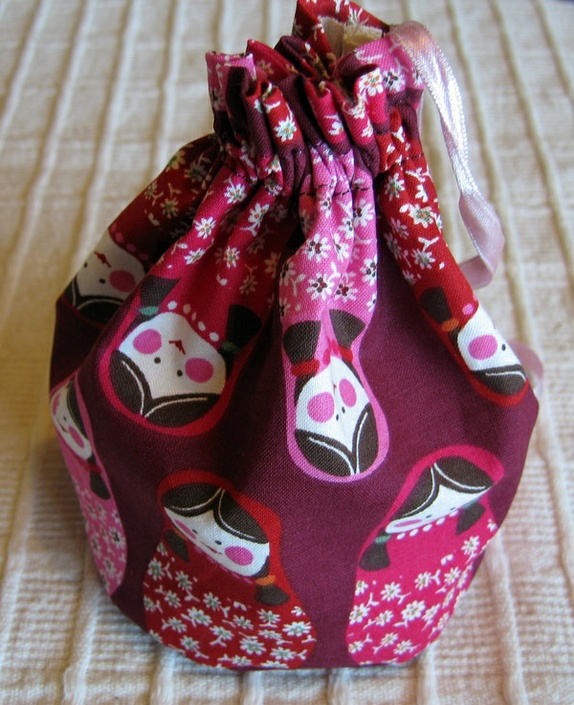 Liten og enkel, men søt pompadur i rosa bomullsstoff med babushka-motiv.