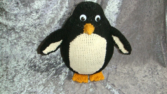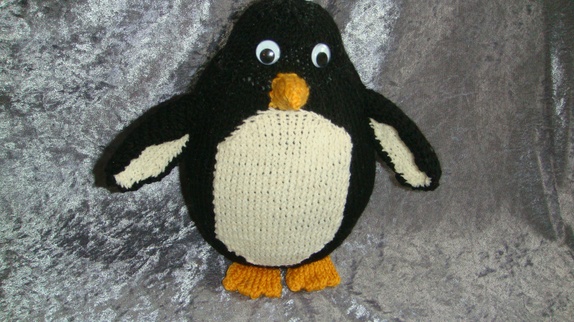 Pingviner er fascinerende både for store og små,denne pingvinen er strikket i 75% ny ull og 25 % polyamide.Så den kan vaskes på 40 grader ,ullprogram i maskinen uten skyllemiddel.