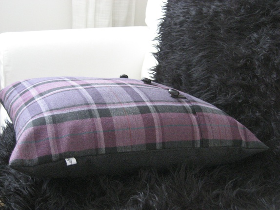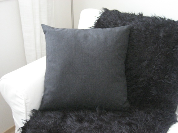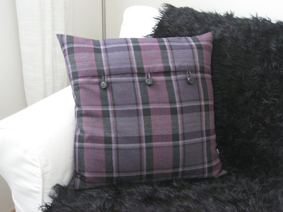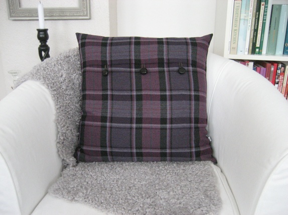 Putetrekk sydd i gjenbruksstoff. Mykt og deilig stoff i lilla, grått og sort. Stoffet er viskose, det er i god kvalitet og har et litt ullpreg over seg.