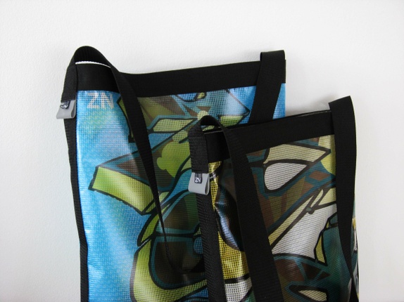 Selve vesken er sydd av et kraftig plastikkmateriale med vevde forsterkningstråder. I utgangspunktet er materialet gjennomskinnelig, men pga printet dempes dette.