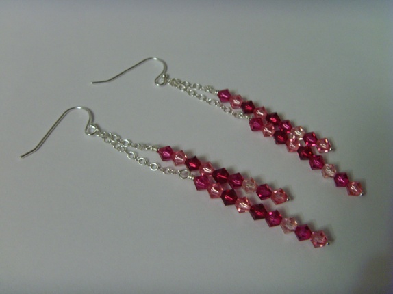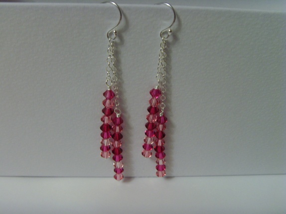 6 cm lange øredobber med bikone swarovski krystaller i fargene Rose, Light Rose, Ruby og Fuchsia.