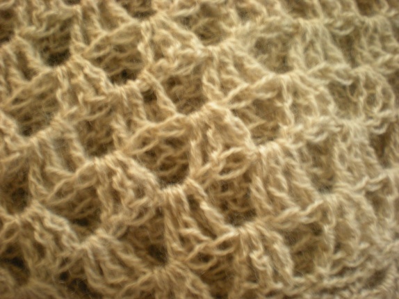 Heklet i Kitten Mohairgarn fra Sandnesgarn. Består av 30% mohair, 20% ull og 50% courtelle, og vaskes for hånd på 30 grader. Kitten Mohair gir et luftig og lekkert utseende.