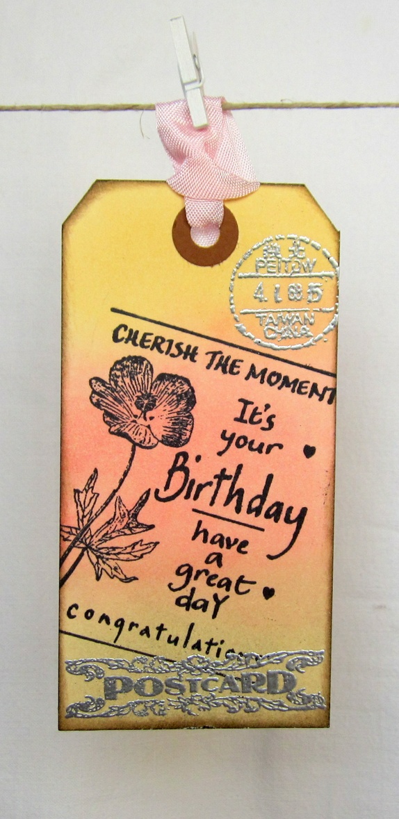 Lappene er farget i friske farger - grønt, rosa og gult. De er stemplet med et¨bursdagsstempel i sort og sølvembossede detaljer. På baksiden av lappene er det stemplet "To" og "From", og det er plass til en personlig hilsen.