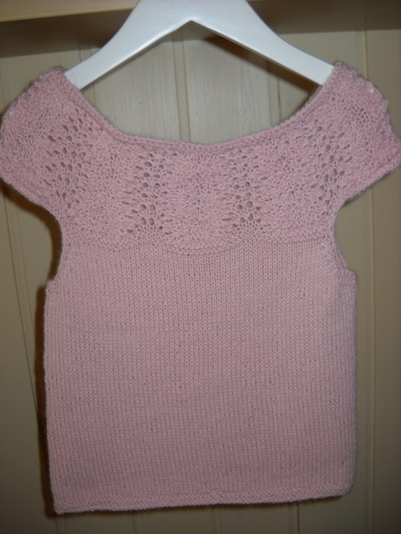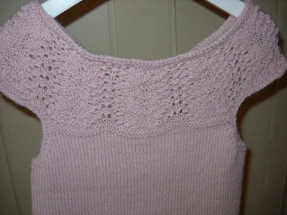 Rosa tunika/vest til barn i str ca 2 år. (ikke kjole) Håndstrikket i 100% Sandnes MiniAlpakka. Klør ikke. Lengde: ca 32cm . Bredde: 26cm. Lik foran og bak.