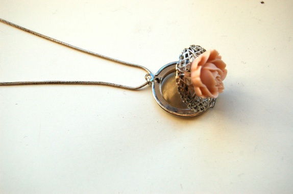 Kjede og brosje med rosa rose