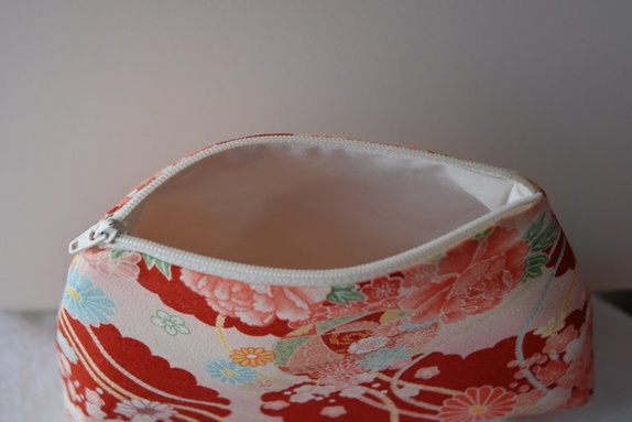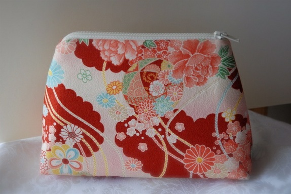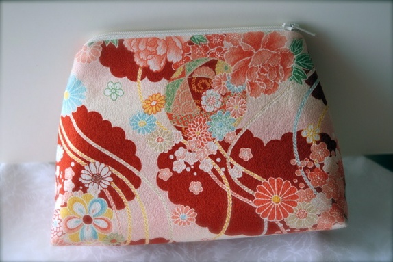 Liten pung - passe stor til sminke. Japansk kimonostoff i bomull. Foret med kremfarget bomull.