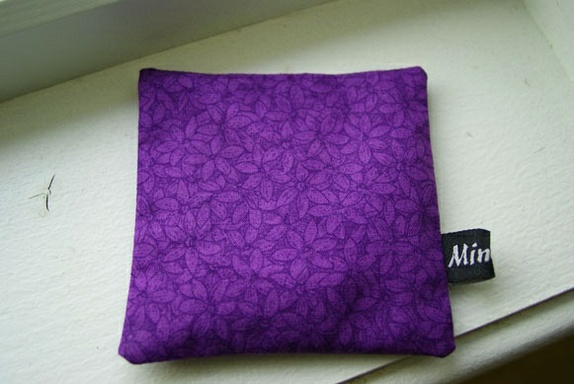 Fargen på lavendelposen er lilla med mønster av blomster.