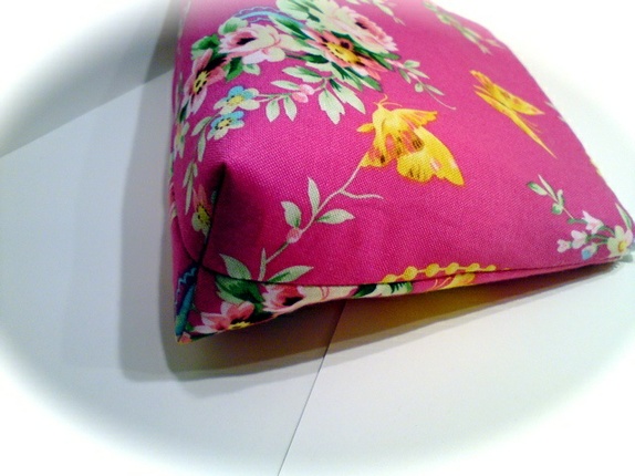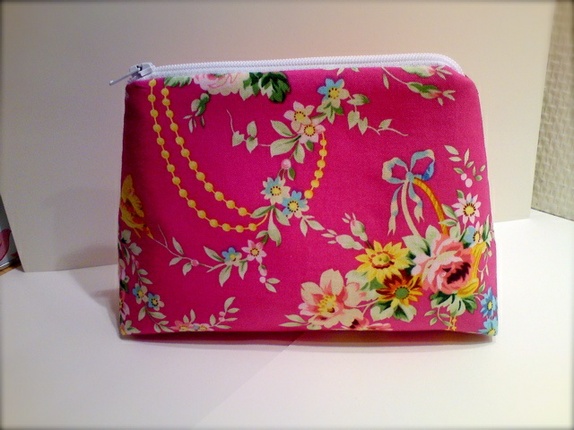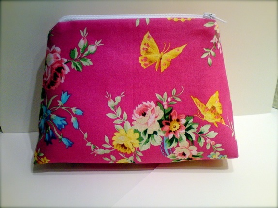Liten pung - passe stor til sminke. Bomull i knall rosa med blomster og sommerfugler.
