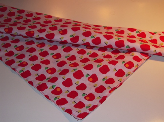 Trekant skjerf med små epler. Rødt og rosa. Bomull.Vaskes på 40 grader.