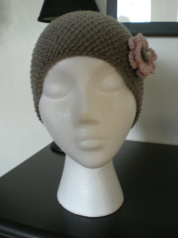 Farge: Beige (lys gråbrun), blomst i støvrosa/beige med