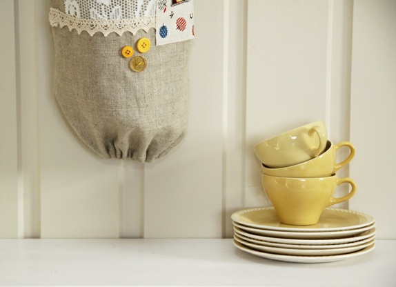 En fin og original poseoppsamler som pynter opp på kjøkkenet.
