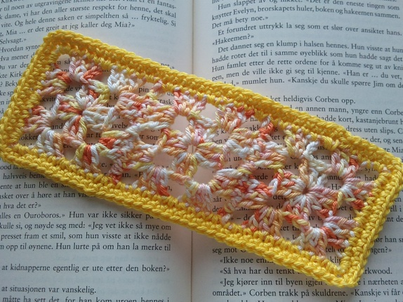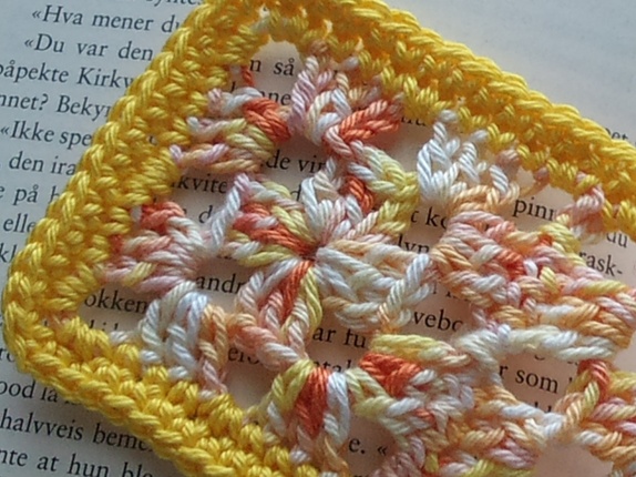 Flerfarget garn på rutene, og ensfarget utenpå.