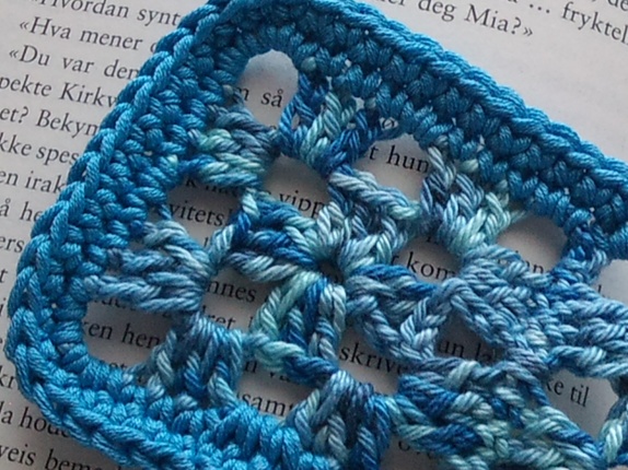 Flerfarget garn på rutene, og ensfarget utenpå.