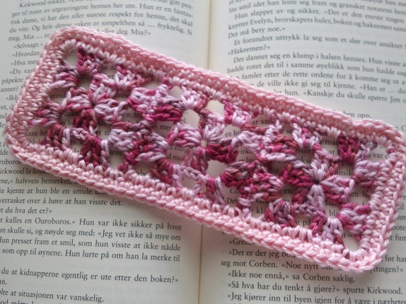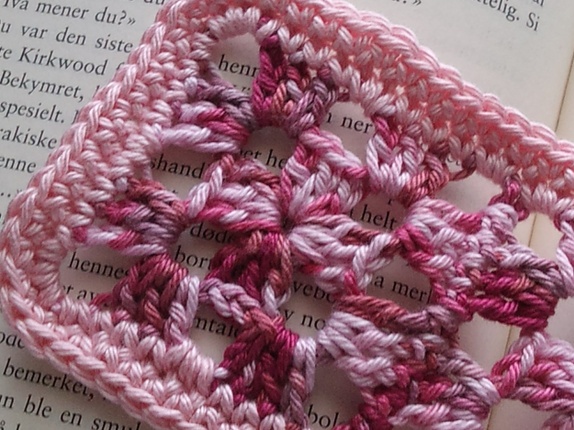 Flerfarget garn på rutene, og ensfarget utenpå.