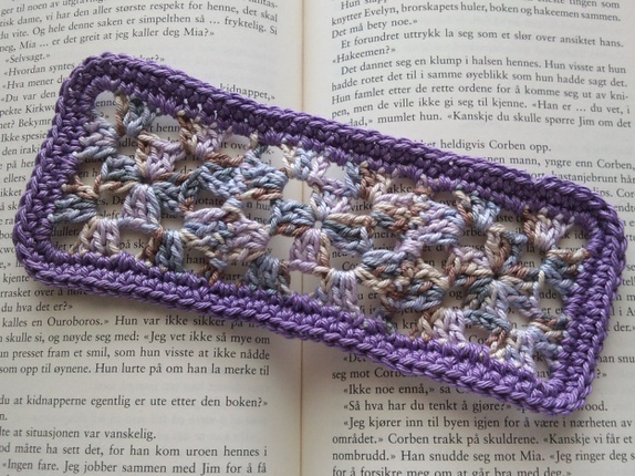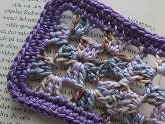 Flerfarget garn på rutene, og ensfarget utenpå.