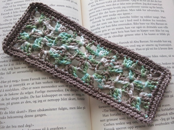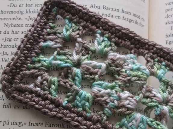 Flerfarget garn på rutene, og ensfarget utenpå.