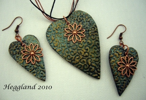 Hjerter av polymerleire og små kobberblomster, romatikk og unik!