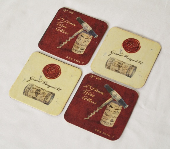 4 Glassbrikker med rustikke vinmotiv, tosidige