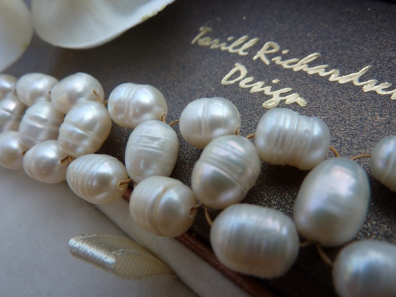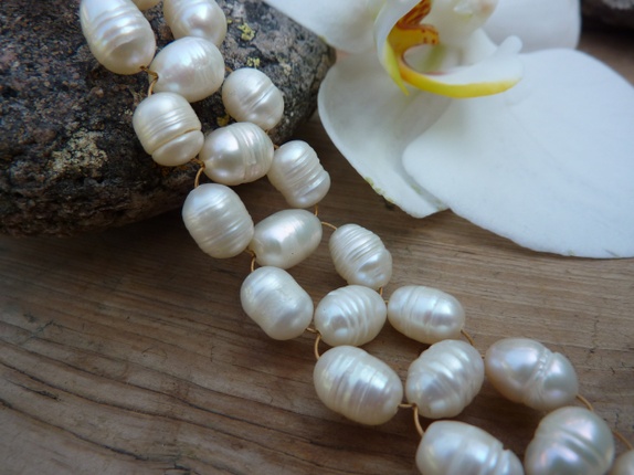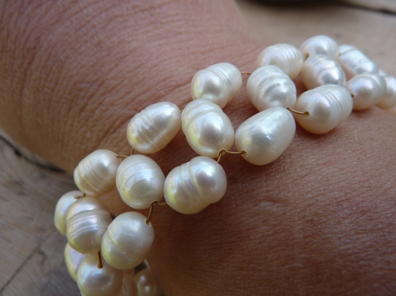 Armebåndet er lage ferskvanns perler som er tredd på en spesiell måte.Karabinlås.21 cm langt.