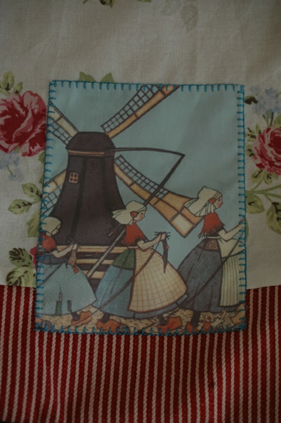 Påsydd bilde av nederlandske strikkende budeier, med vindmøller, tresko og det hele. Det er vel ingen hemlighet at jeg elsker Nederland?
